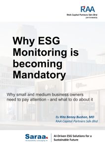 RAA Capital Partners Sdn Bhd is a leading sustainability consulting firm offering comprehensive ESG solutions through the expertise of our seasoned professionals. Powered by our proprietary AI engine, we deliver real-time, data-driven insights tailored to meet both local and global compliance standards, helping businesses navigate the complexities of sustainability with precision and impact.