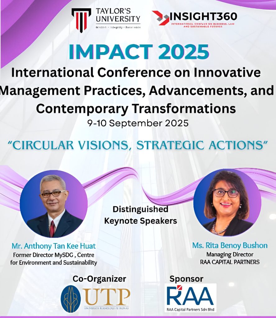There was incredible energy and forward-thinking dialogue from the IMPACT 2025 conference, held on the 9th and 10th of September. Hosted by our esteemed partners at Taylor’s University, this International Conference on Innovative Management Practices, Advancements, and Contemporary Transformations was a phenomenal success.