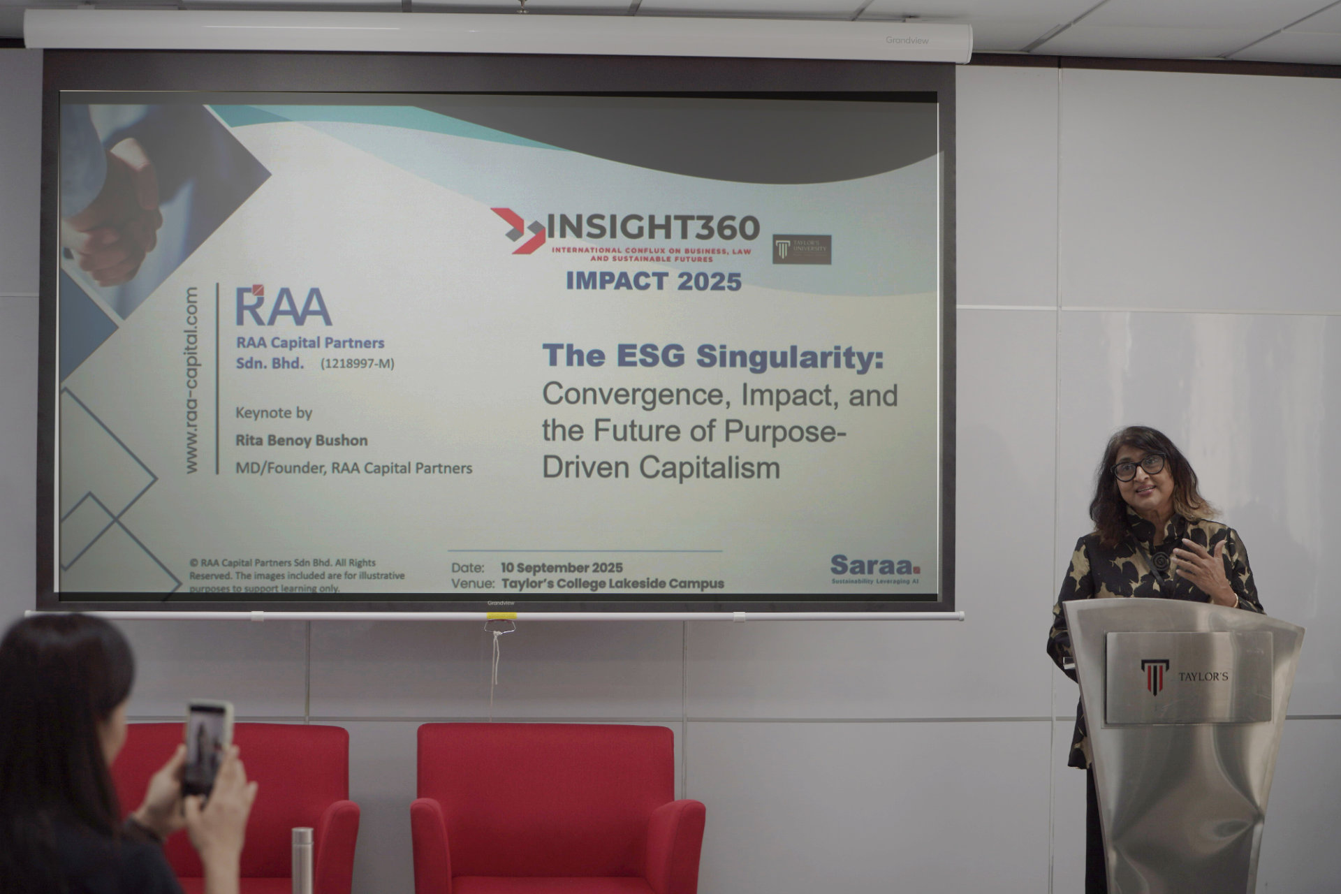 We recently partnered with Taylor’s University for the inspiring IMPACT 2025 conference, fostering the next generation of sustainability leaders. The MD of RAA, Rita Benoy Bush, delivered a powerful keynote on the future of purpose-driven capitalism.